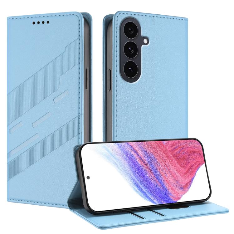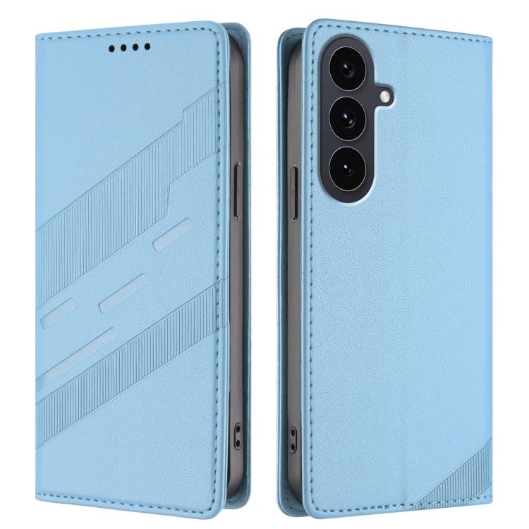 For Samsung Galaxy S25 FE 5G Embossed Multi-functional Wallet Retro Leather Phone Case(Light Blue)