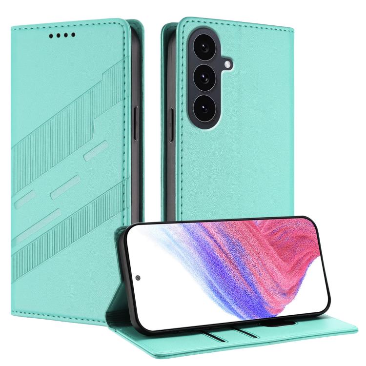For Samsung Galaxy S25 FE 5G Embossed Multi-functional Wallet Retro Leather Phone Case(Mint Green)