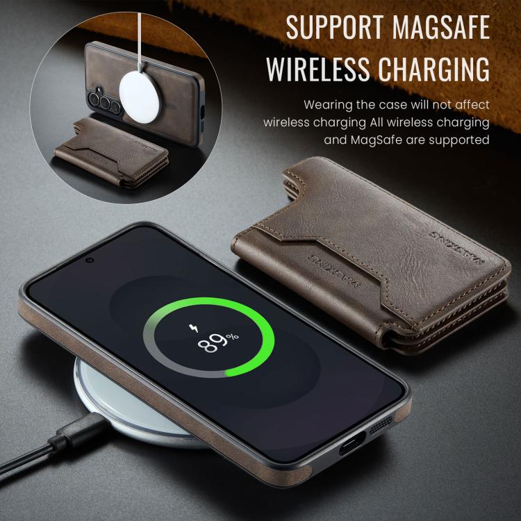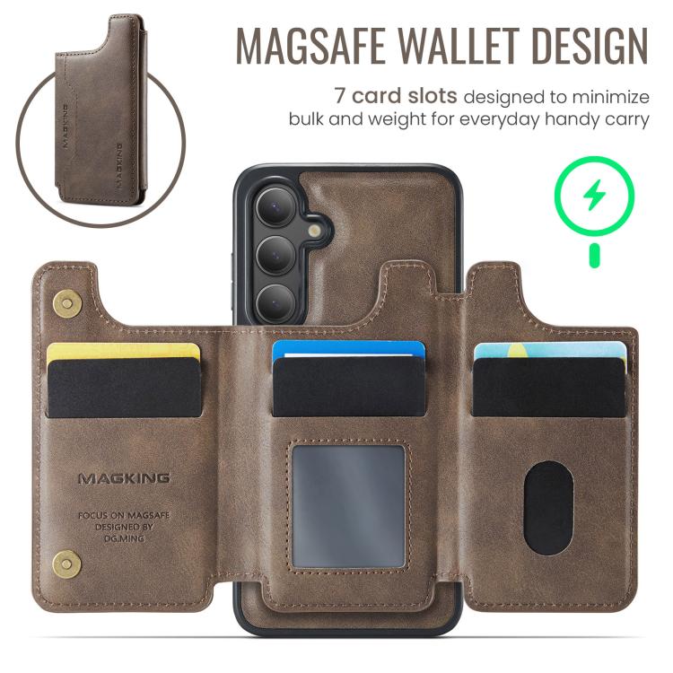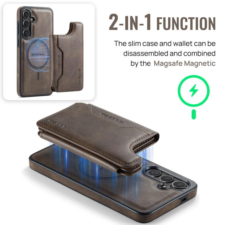 For Samsung Galaxy S25 FE 5G MAGKING K3 Series MagSafe RFID Card Bag Detachable Phone Case(Coffee)