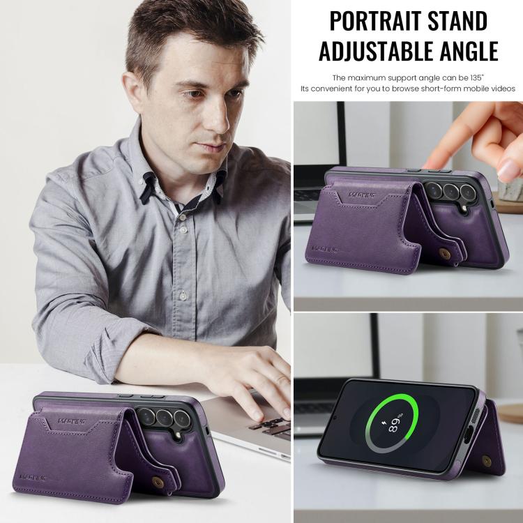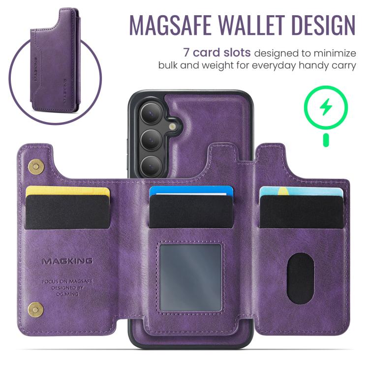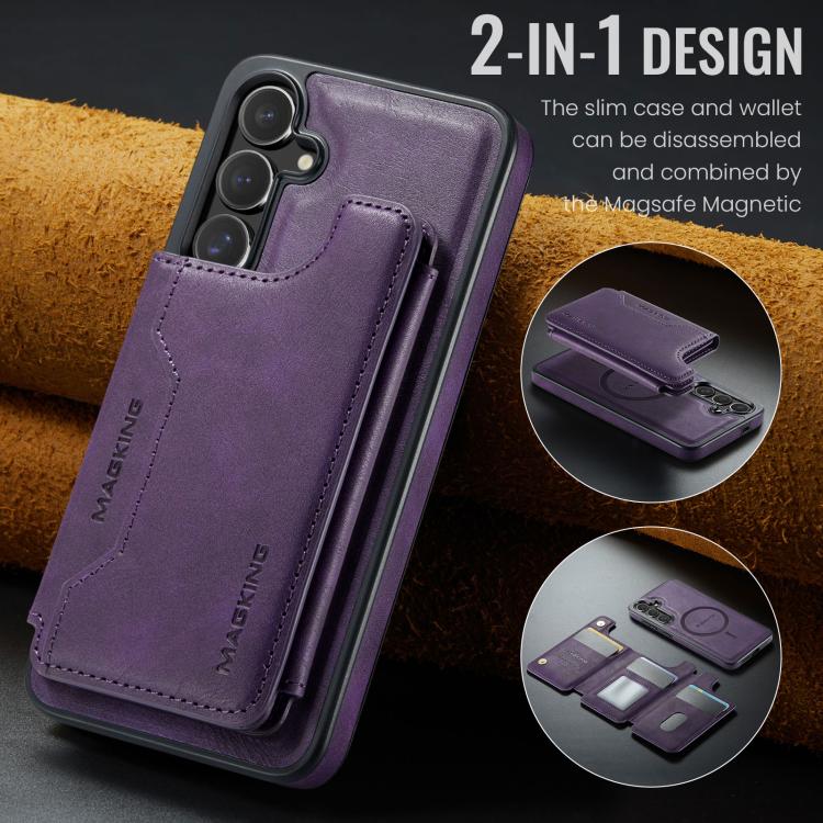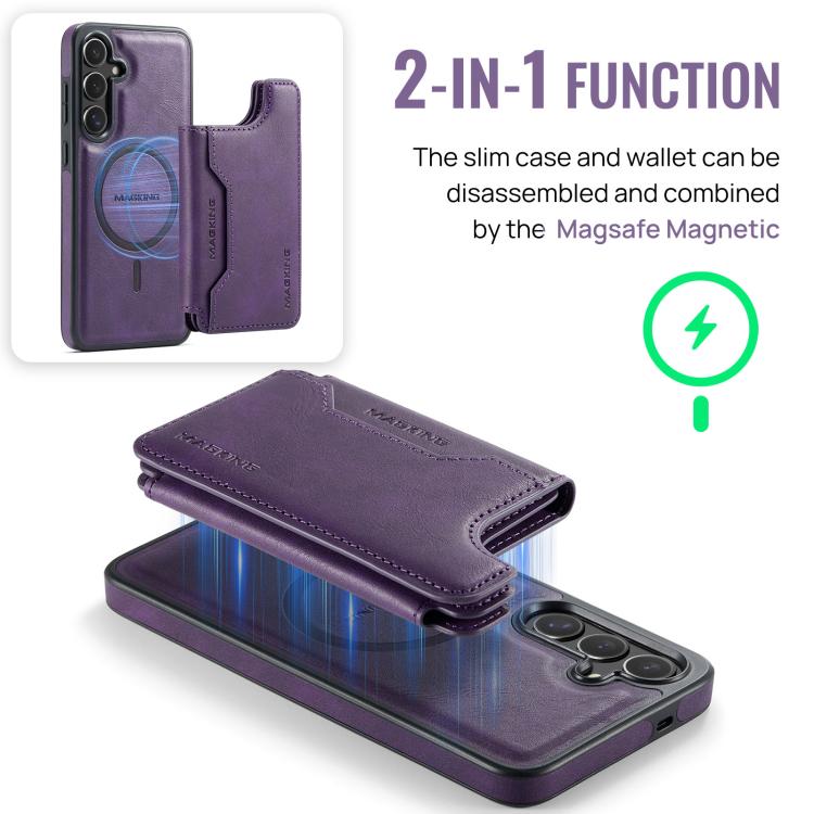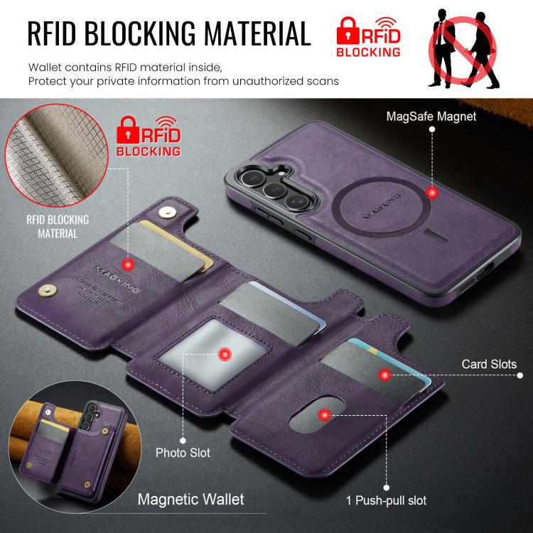 For Samsung Galaxy S25 FE 5G MAGKING K3 Series MagSafe RFID Card Bag Detachable Phone Case(Purple)