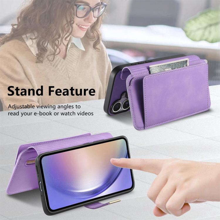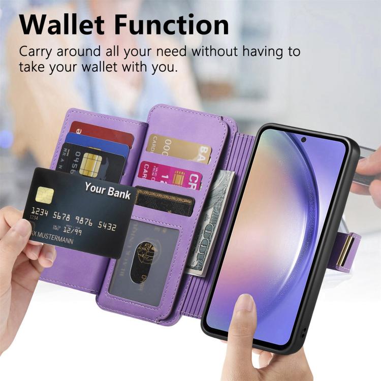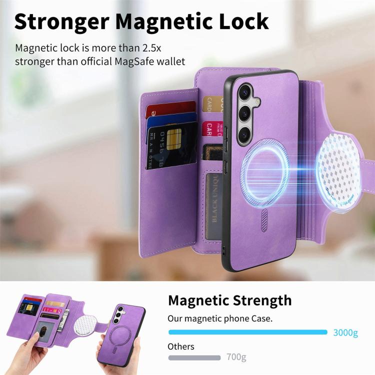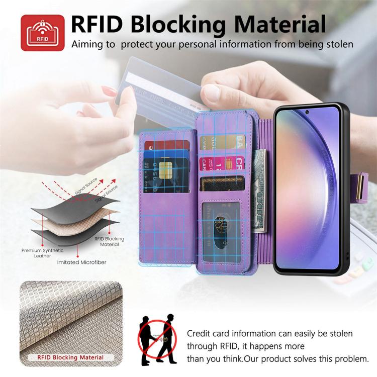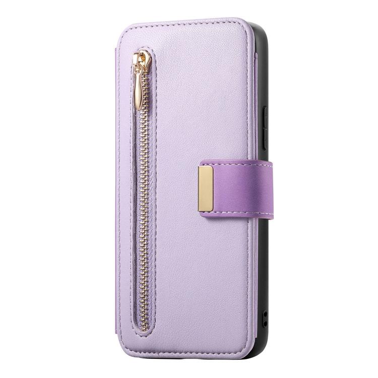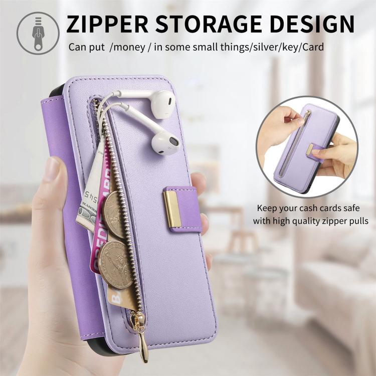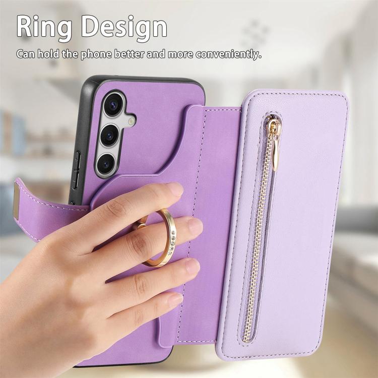 For Samsung Galaxy S25 FE 5G Ring Zipper Wallet RFID Blocking MagSafe Leather Phone Case(Purple)