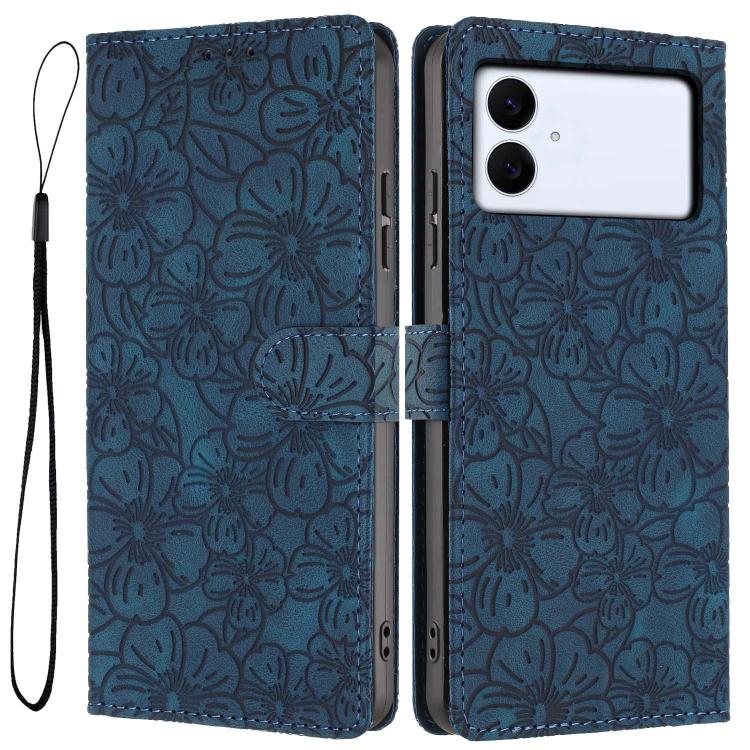 For Samsung Galaxy S26 Edge 5G Cherry Blossoms Embossed Leather Phone Case(Dark Blue)
