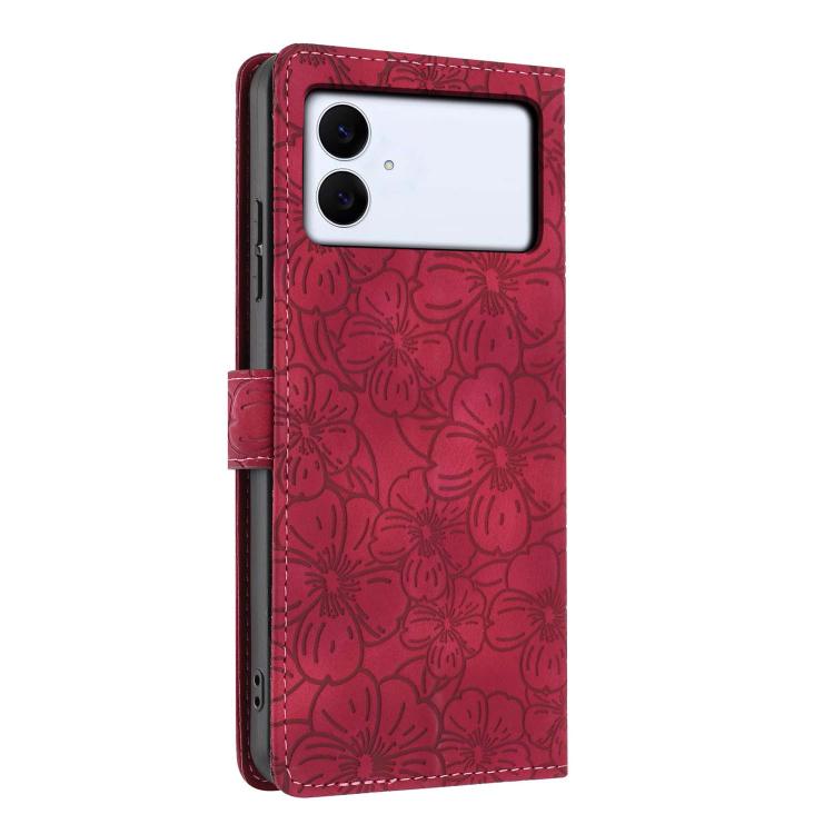 For Samsung Galaxy S26 Edge 5G Cherry Blossoms Embossed Leather Phone Case(Red)