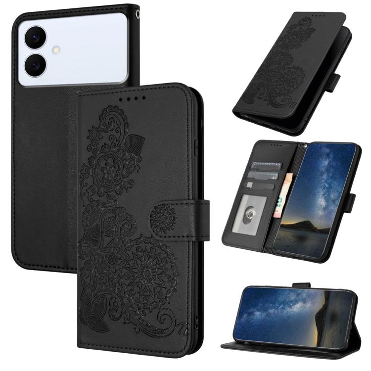 For Samsung Galaxy S26 Edge 5G Datura Flower Embossed Flip Leather Phone Case(Black)