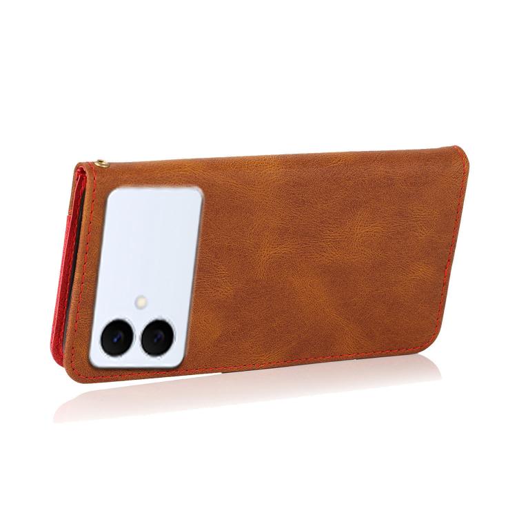 For Samsung Galaxy S26 Edge 5G Dual-color Stitching Leather Phone Case(Brown Red)