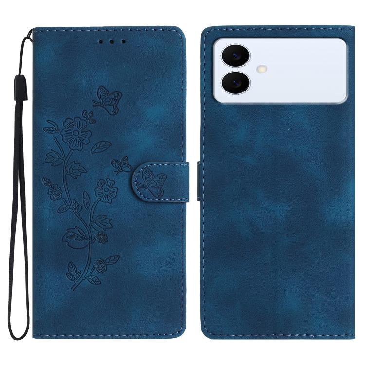 For Samsung Galaxy S26 Edge 5G Flower Butterfly Embossing Pattern Leather Phone Case(Blue)