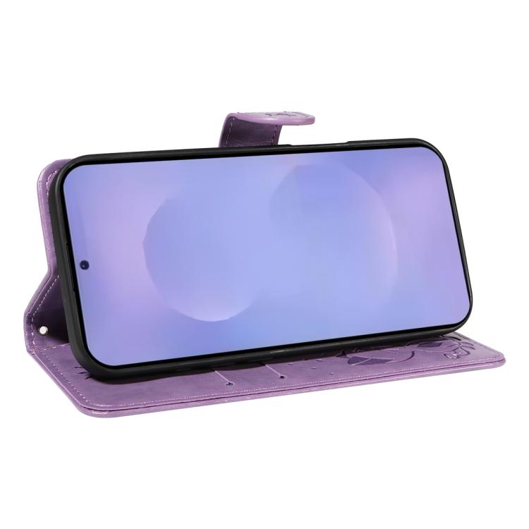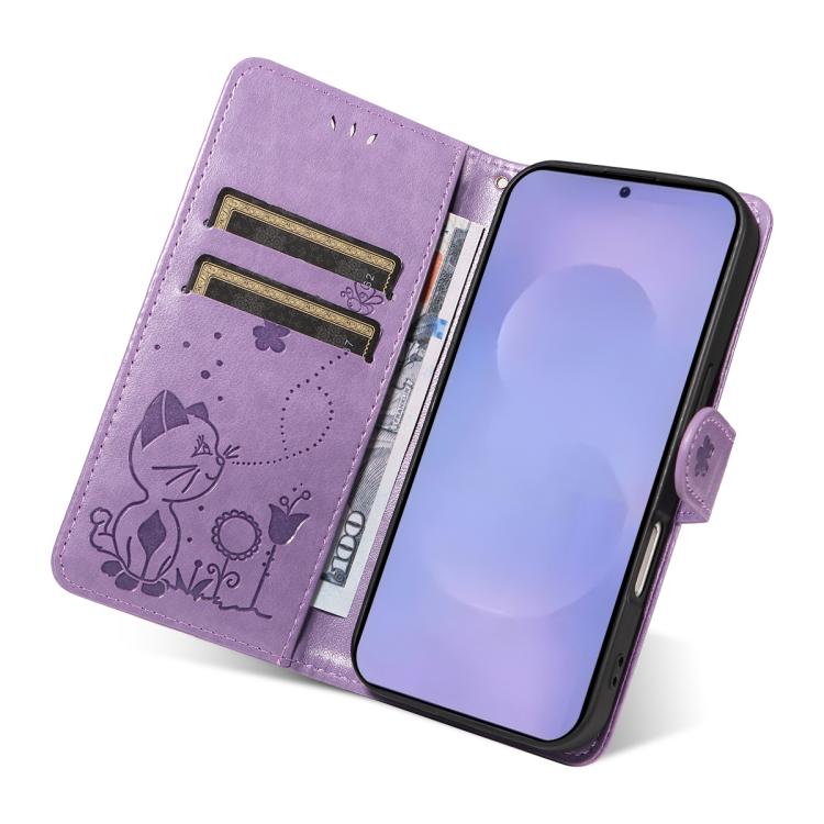 For Samsung Galaxy S26 Pro 5G Cat and Bee Embossed Flip Leather Phone Case(Purple)