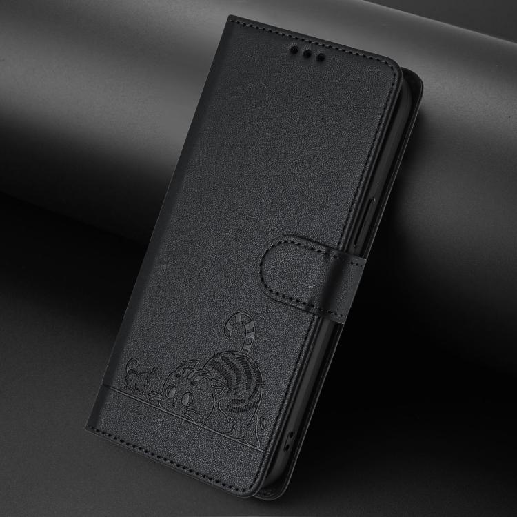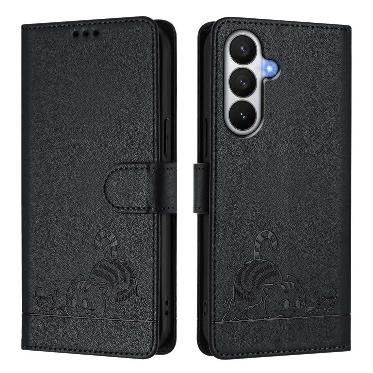 For Samsung Galaxy S26 Pro 5G Cat Rat Embossed Pattern RFID Leather Phone Case with Lanyard(Black)
