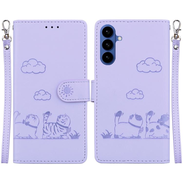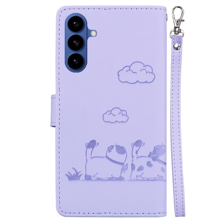 For Samsung Galaxy S26 Pro 5G Cute Cats RFID Leather Phone Case(Purple)