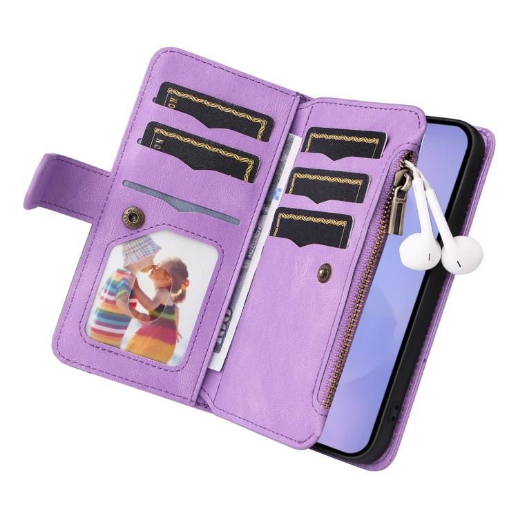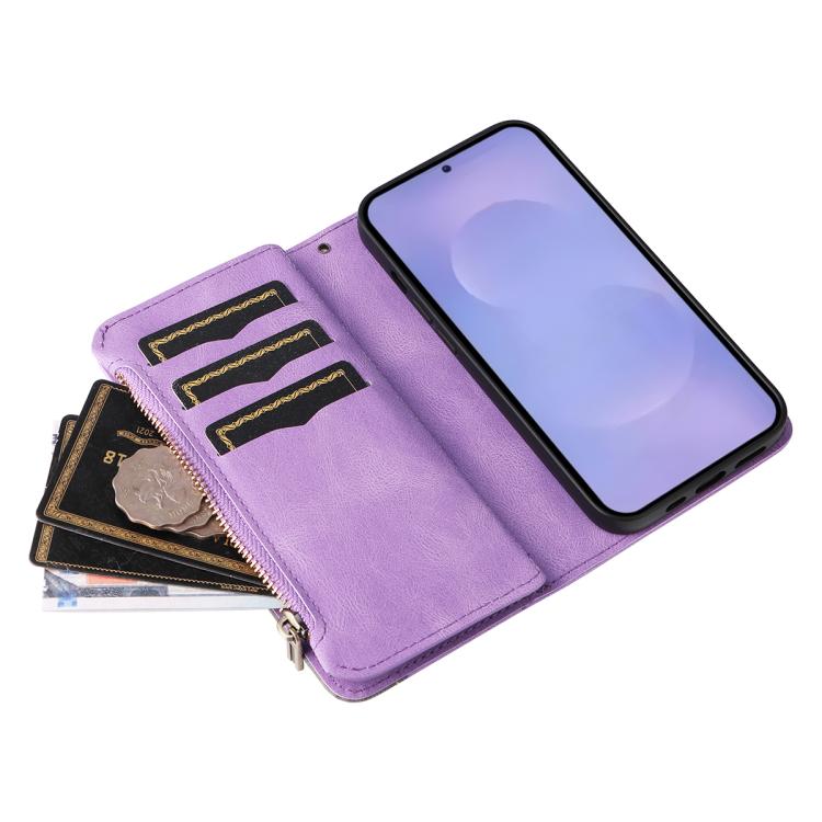 For Samsung Galaxy S26 Pro 5G Dual-color 9 Card Slots Zipper Wallet Leather Phone Case(Purple)