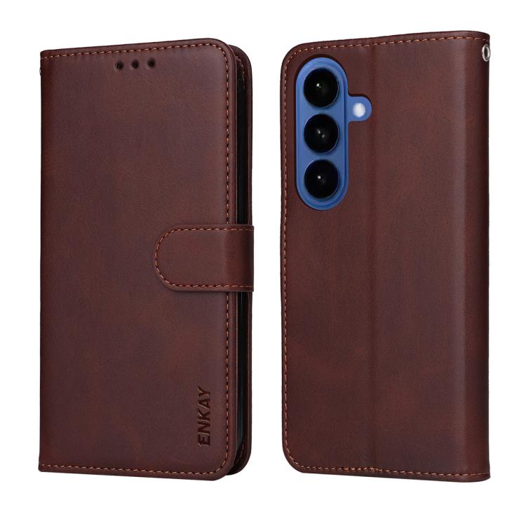 For Samsung Galaxy S26 Pro 5G ENKAY Card Wallet Calf Texture Leather Phone Case with 0.18mm High Aluminum-silicon Glass Film(Red)
