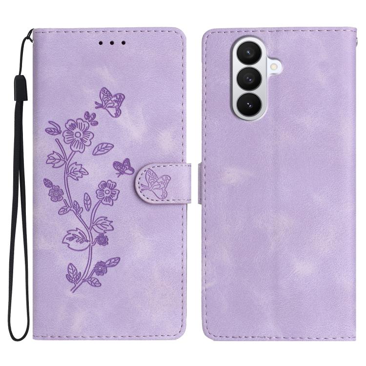 For Samsung Galaxy S26 Pro 5G Flower Butterfly Embossing Pattern Leather Phone Case(Purple)