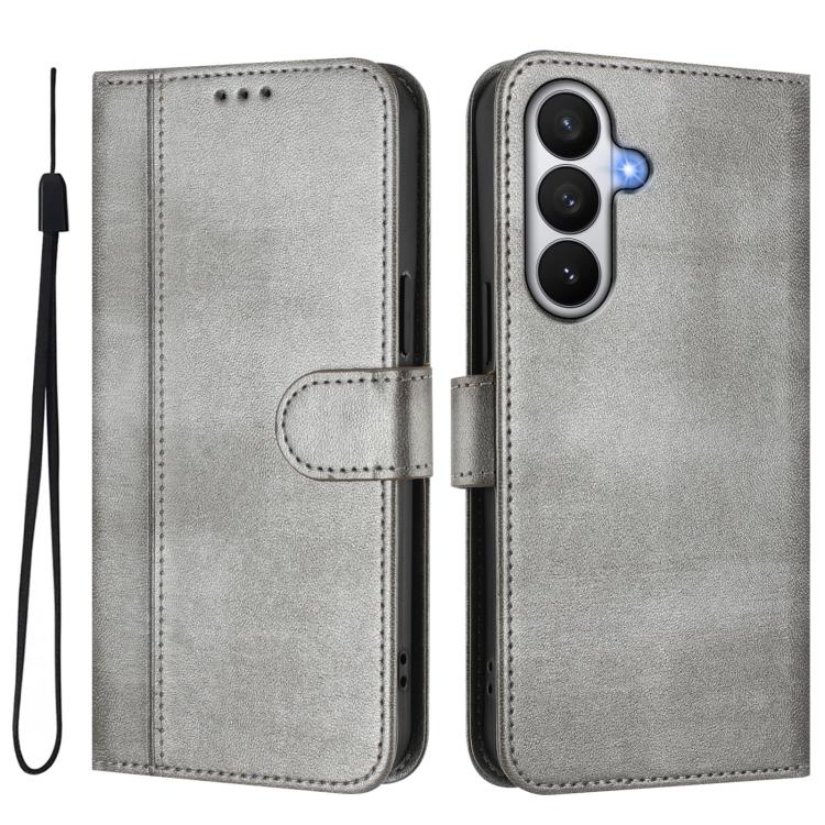 For Samsung Galaxy S26 Pro 5G Line Splicing Buckle Retro Leather Phone Case(Grey)