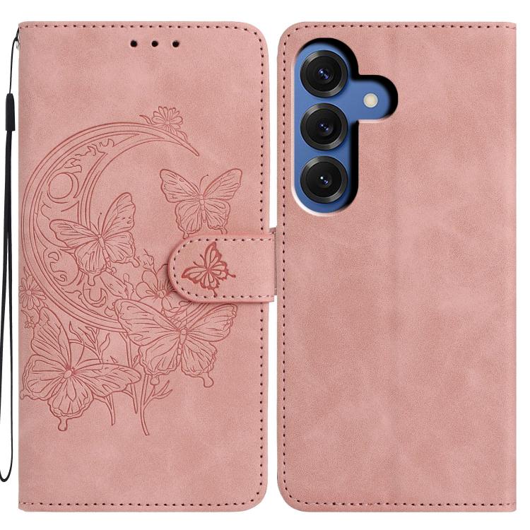 For Samsung Galaxy S26 Pro 5G Moonlit Butterfly Dance Pattern Embossed Leather Phone Case(Pink)