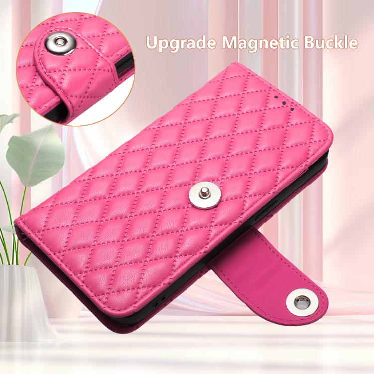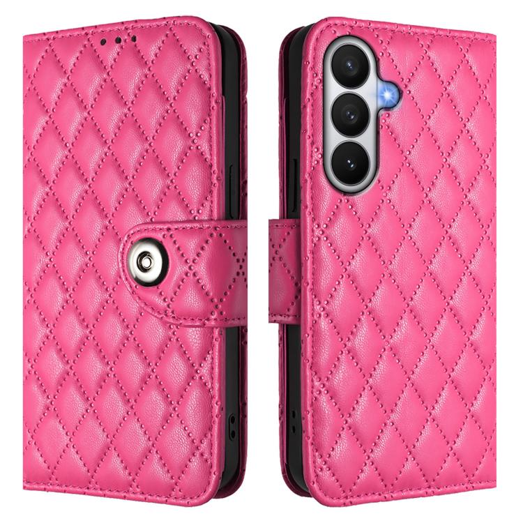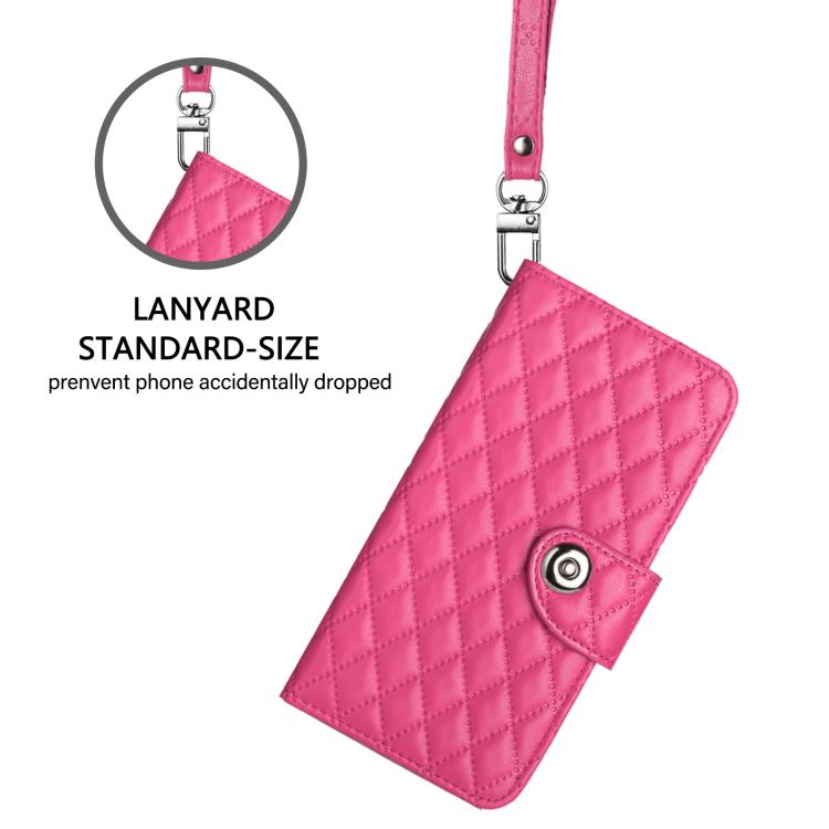 For Samsung Galaxy S26 Pro 5G Rhombic Texture Flip Leather Phone Case with Lanyard(Rose Red)