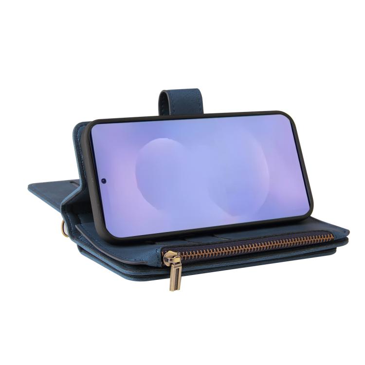 For Samsung Galaxy S26 Pro 5G Skin Feel Multi Card Slots Zipper Wallet Leather Phone Case(Blue)