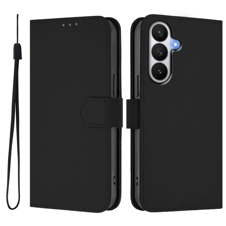 For Samsung Galaxy S26 Pro 5G Skin Feel Solid Color Leather Phone Case with Lanyard(Black)