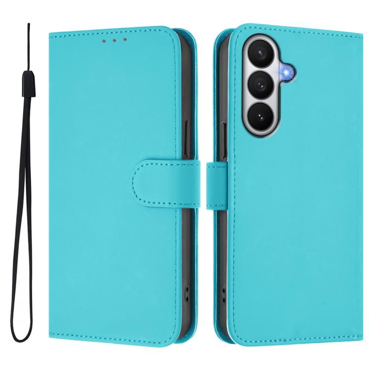 For Samsung Galaxy S26 Pro 5G Skin Feel Solid Color Leather Phone Case with Lanyard(Lake Blue)