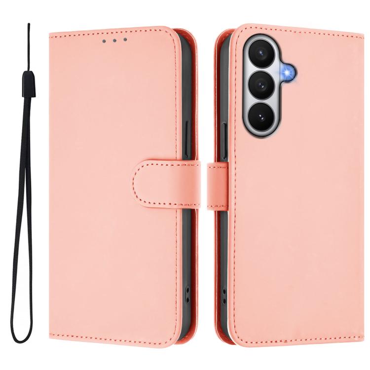 For Samsung Galaxy S26 Pro 5G Skin Feel Solid Color Leather Phone Case with Lanyard(Pink)