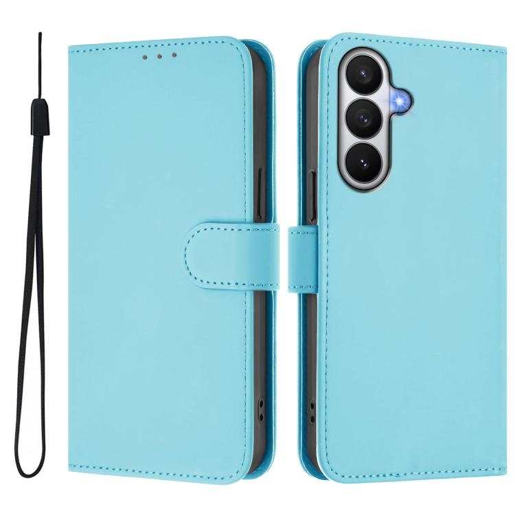 For Samsung Galaxy S26 Pro 5G Skin Feel Solid Color Leather Phone Case with Lanyard(Sky Blue)