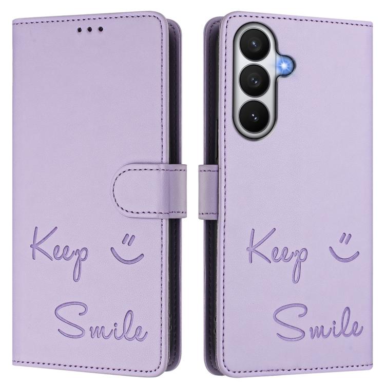 For Samsung Galaxy S26 Pro 5G Smile Embossing RFID Leather Phone Case(Light Purple)