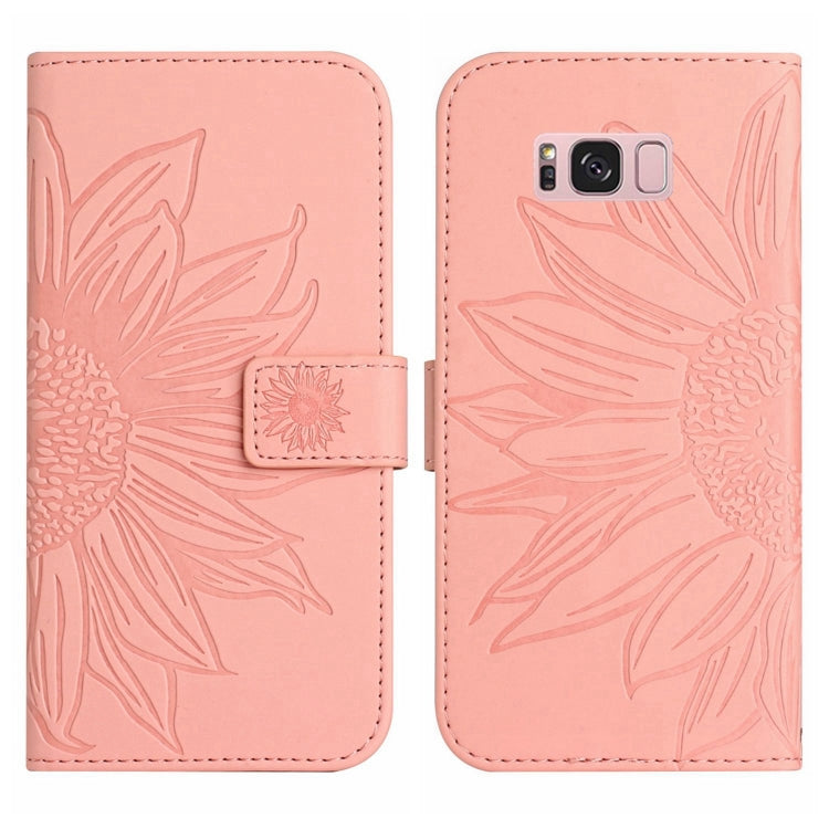 For Samsung Galaxy S8 Skin Feel Sun Flower Pattern Flip Leather Phone Case with Lanyard(Pink)