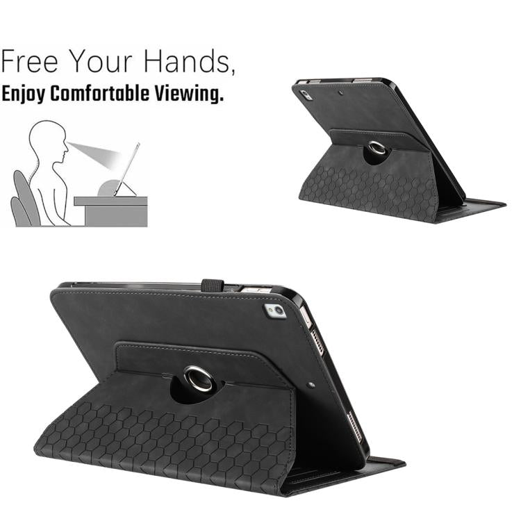 For Samsung Galaxy Tab A 10.1 2019 T510 Rotatable Honeycomb Embossed Leather Tablet Case(Black)