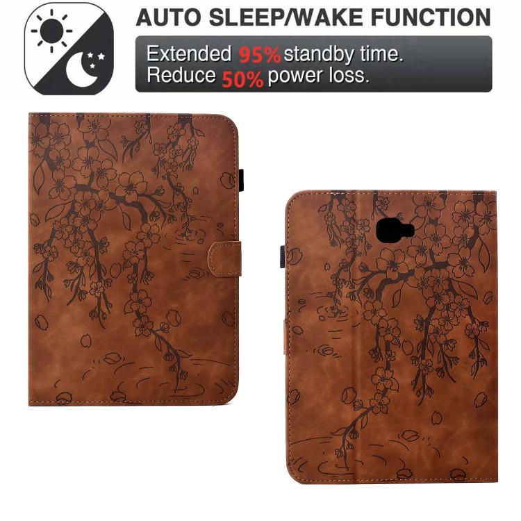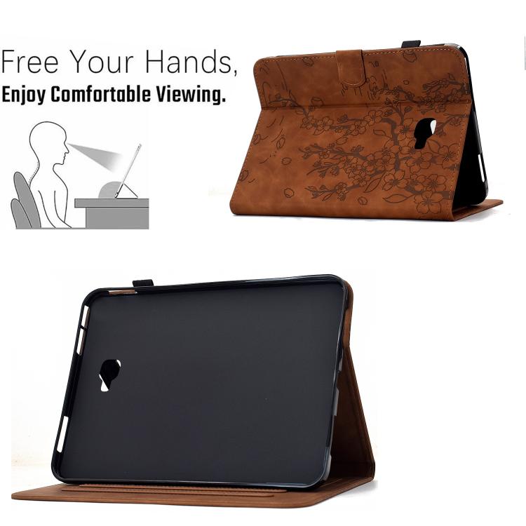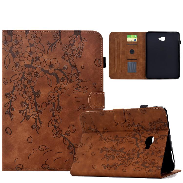 For Samsung Galaxy Tab A 10.1 / T580 Plum Blossom Embossed Smart Leather Tablet Case(Brown)