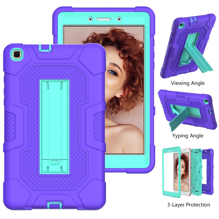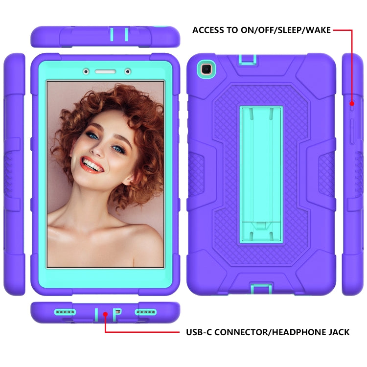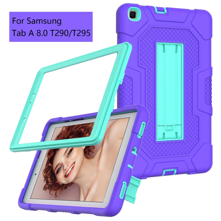 For Samsung Galaxy Tab A 8.0 (2019) / T290 Contrast Color Robot Shockproof Silicone + PC Protective Case with Holder(Purple Mint Green)