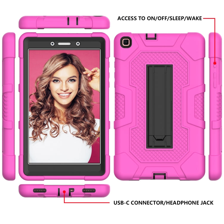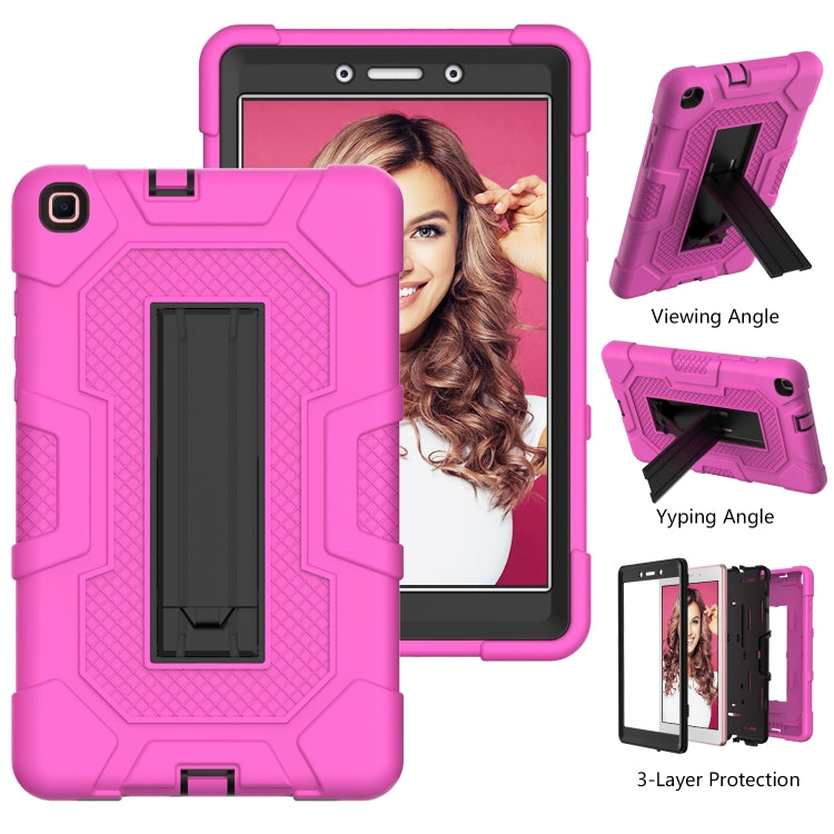 For Samsung Galaxy Tab A 8.0 (2019) / T290 Contrast Color Robot Shockproof Silicone + PC Protective Case with Holder(Rose Red Black)