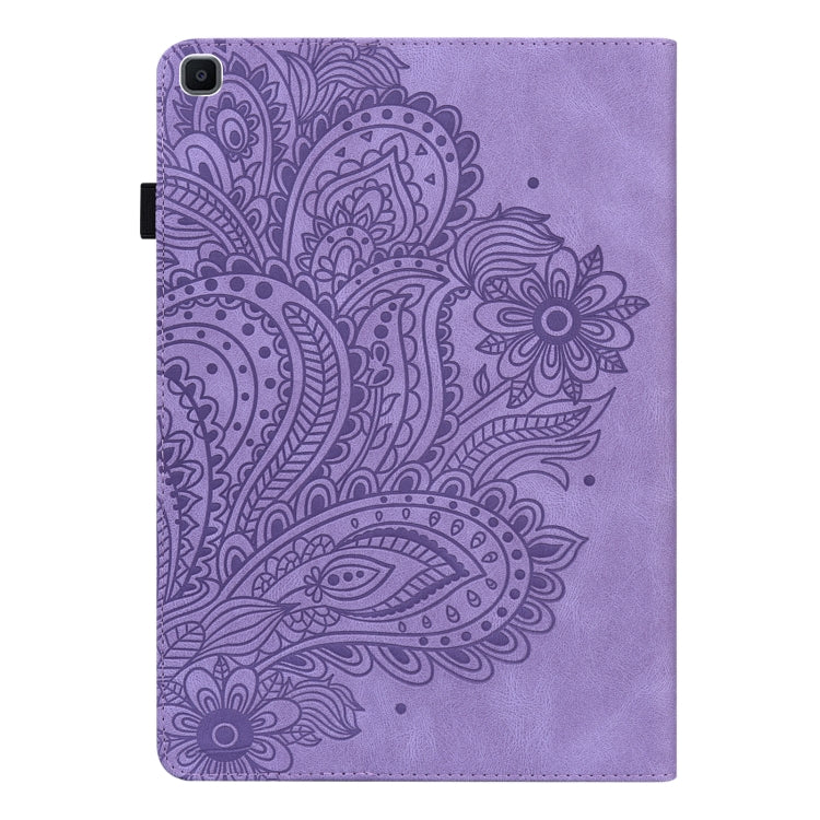 For Samsung Galaxy Tab A 8.0 (2019) T290 Peacock Embossed Pattern TPU + PU Horizontal Flip Leather Case with Holder & Card Slots & Wallet(Purple)