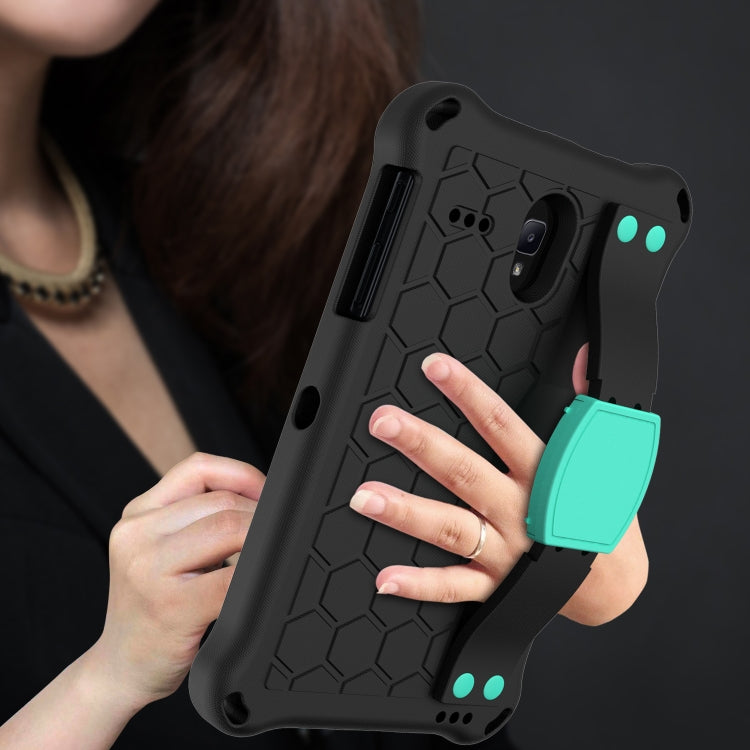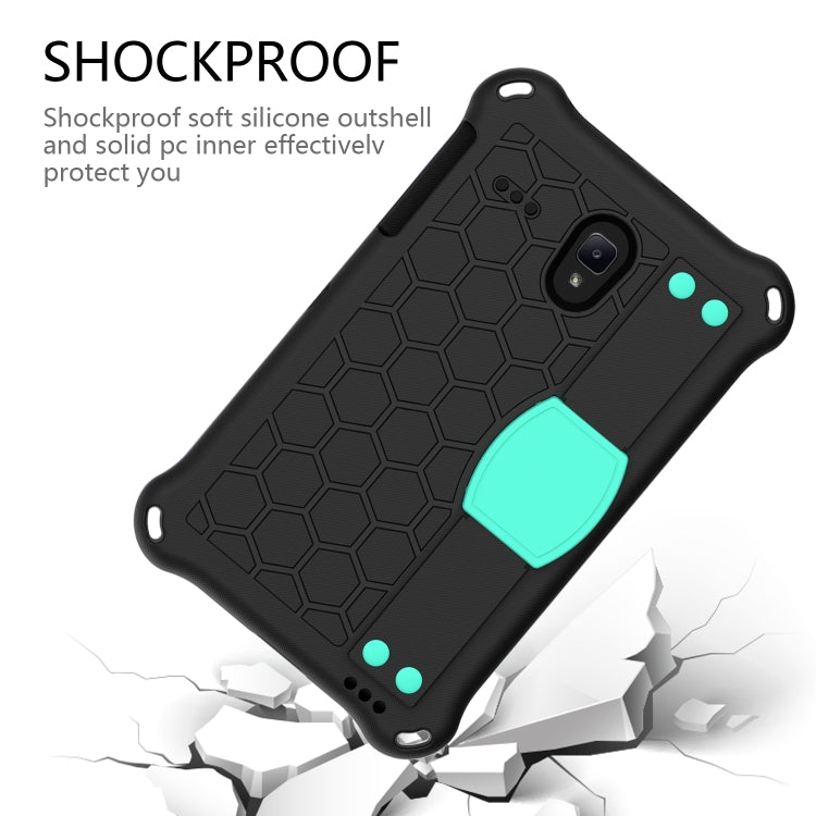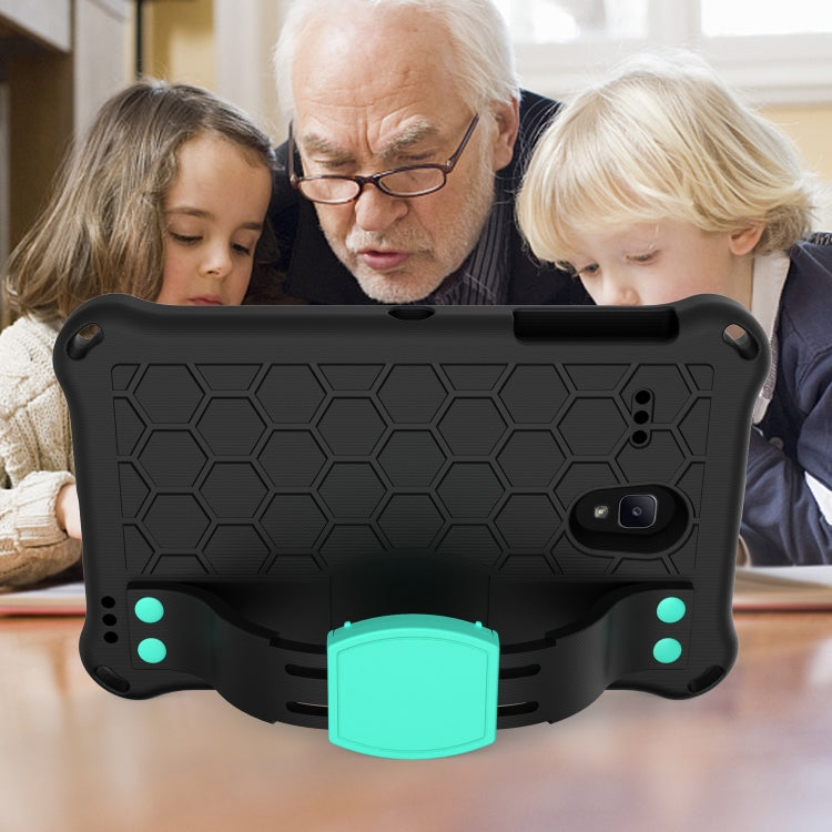 For Samsung Galaxy Tab A 8.0(2018) / T387 Honeycomb Design EVA + PC Four Corner Shockproof Protective Case with Straps(Black+Aqua)