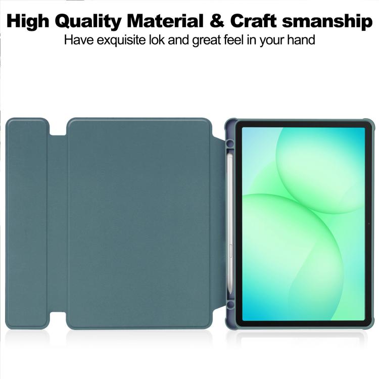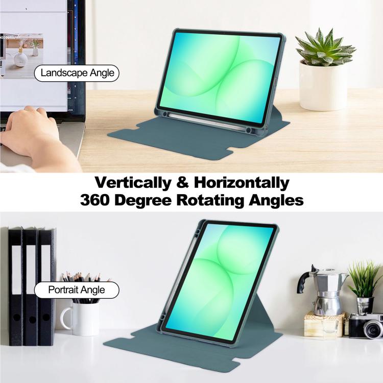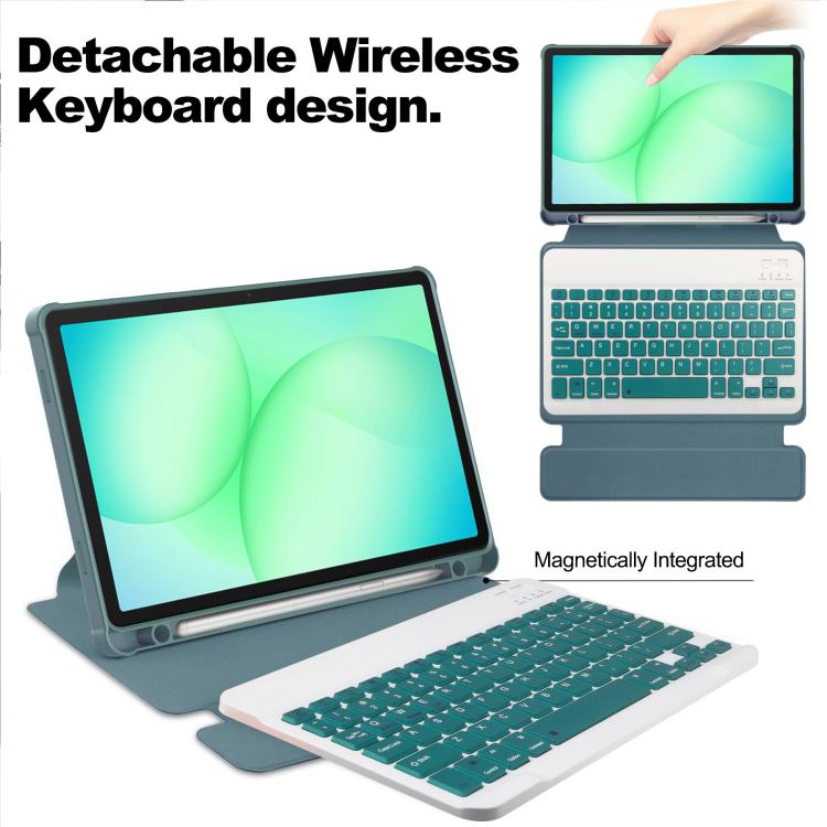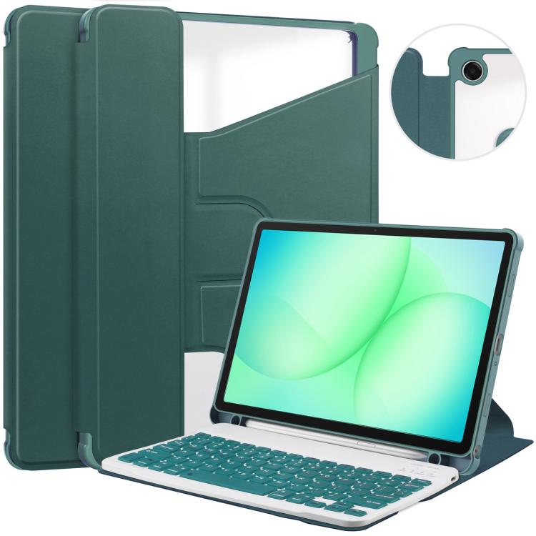 For Samsung Galaxy Tab A11+ 360 Rotation Transparent Smart Leather Case with Keyboard(Dark Green)