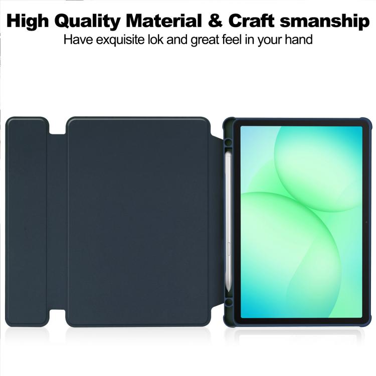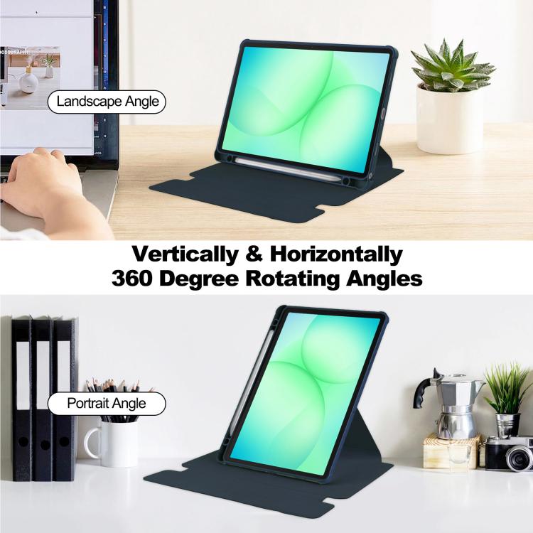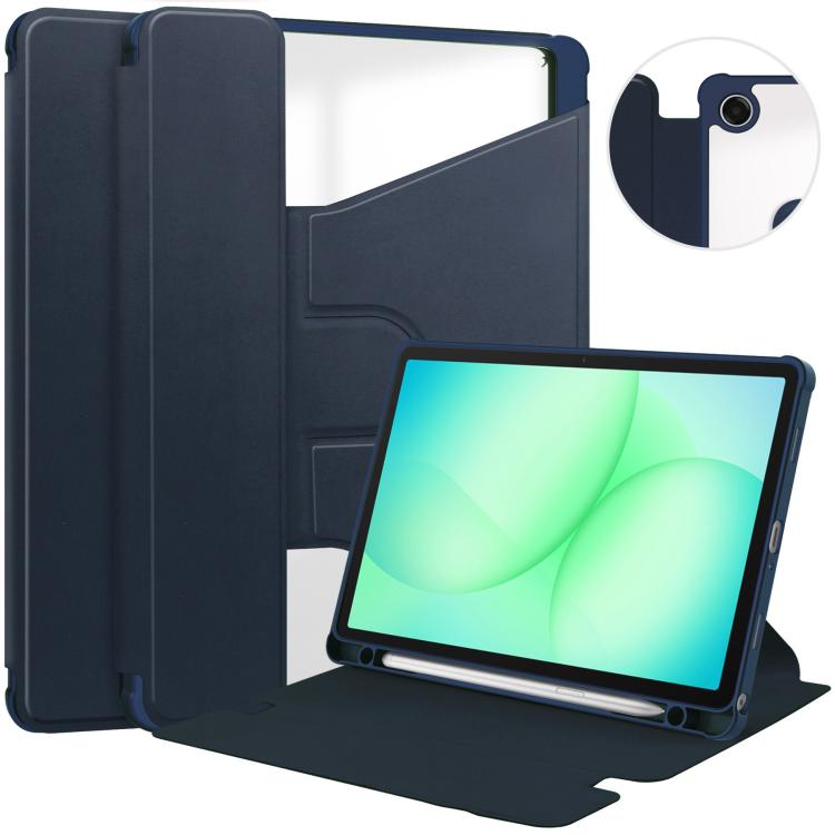 For Samsung Galaxy Tab A11+ 360 Rotation Transparent Smart Leather Case(Dark Blue)