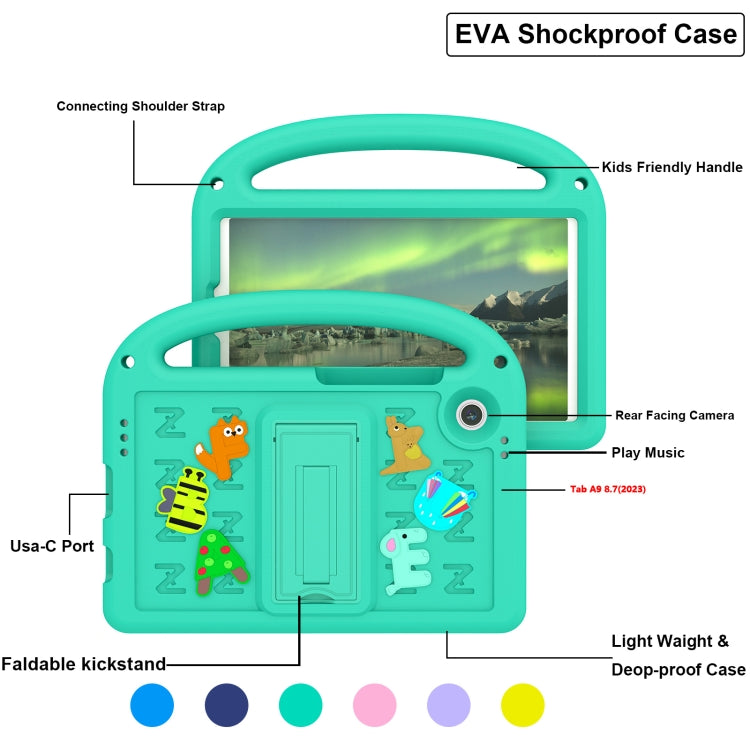 For Samsung Galaxy Tab A11 / A9 Cartoon Sparrow EVA Shockproof Tablet Case(Glacier Green)