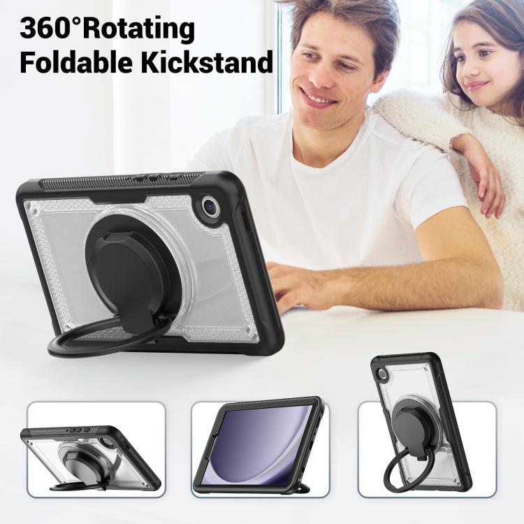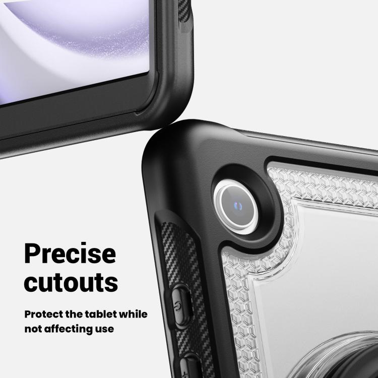 For Samsung Galaxy Tab A11 / A9 Honeycomb Hybrid Tablet Case with Handle Holder & Strap(Transparent)