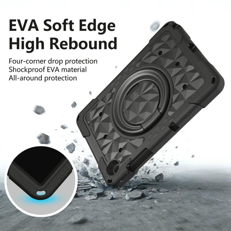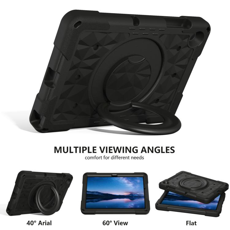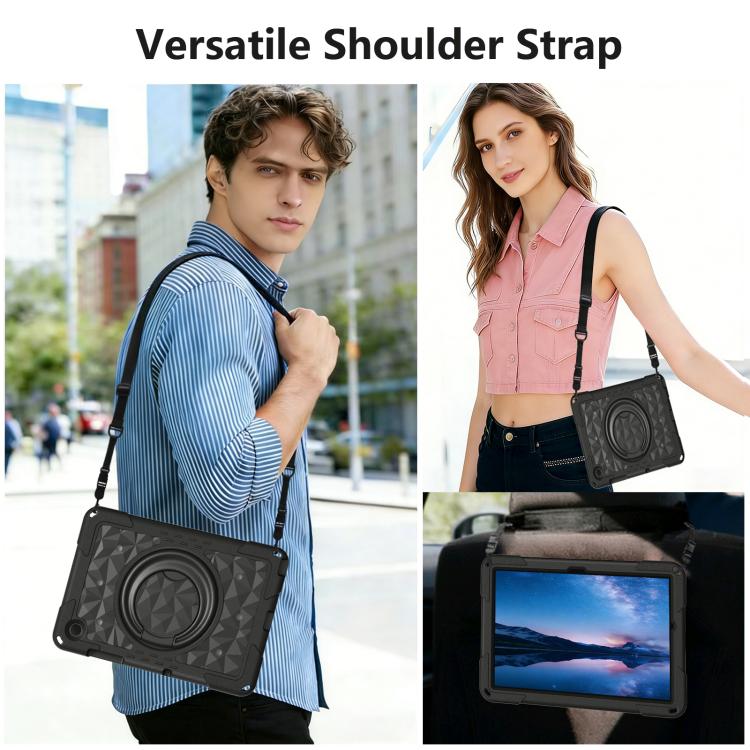 For Samsung Galaxy Tab A11+ / A9+ Magic Ring Rotation Holder Shockproof Tablet Case with Shoulder Straps(Black)