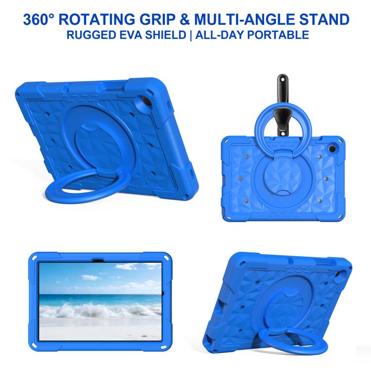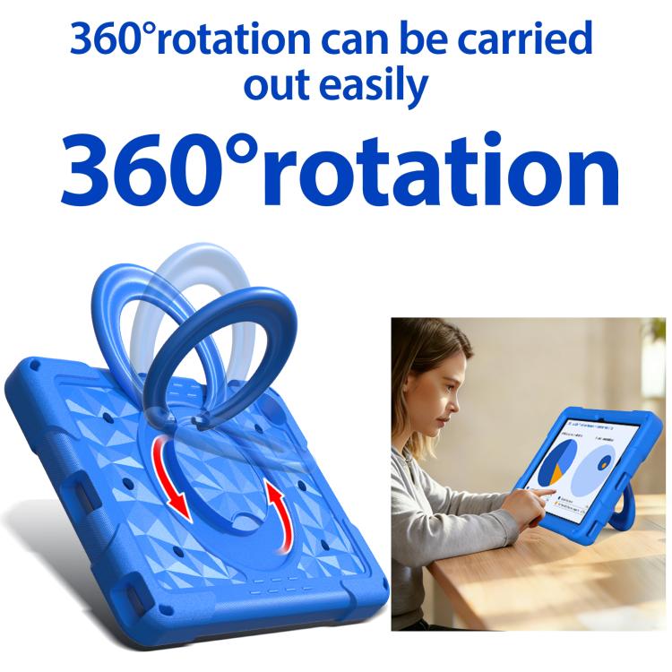 For Samsung Galaxy Tab A11+ / A9+ Magic Ring Rotation Holder Shockproof Tablet Case with Shoulder Straps(Blue)