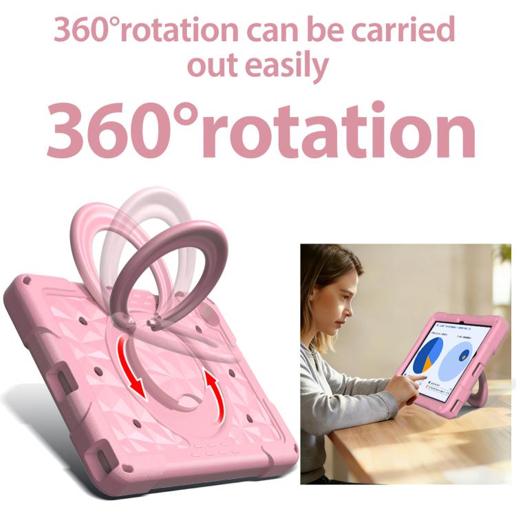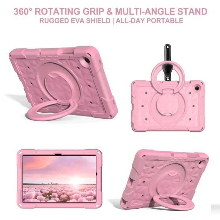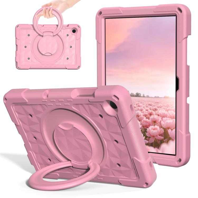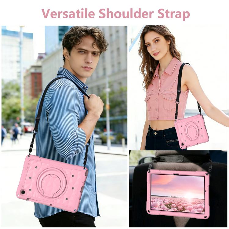 For Samsung Galaxy Tab A11+ / A9+ Magic Ring Rotation Holder Shockproof Tablet Case with Shoulder Straps(Pink)