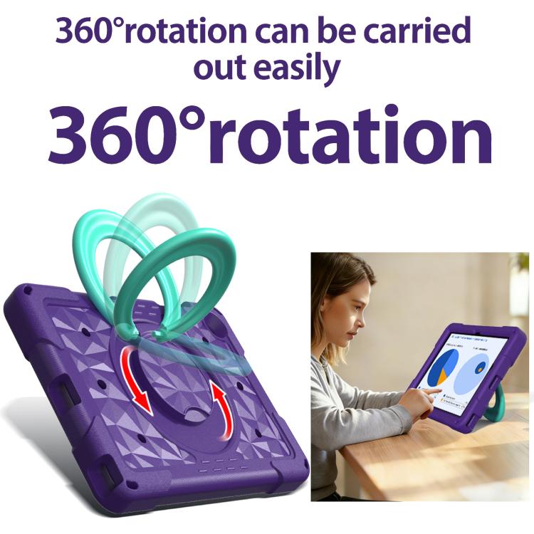 For Samsung Galaxy Tab A11+ / A9+ Magic Ring Rotation Holder Shockproof Tablet Case with Shoulder Straps(Purple+Aqua)