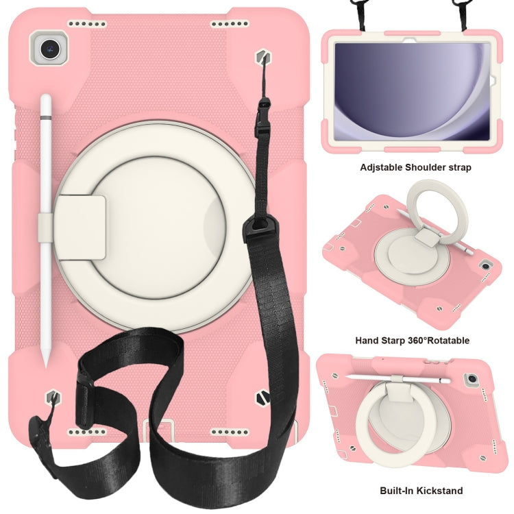 For Samsung Galaxy Tab A11+ / A9+ Silicone Hybrid PC Tablet Case with Shoulders Strap(Pink)