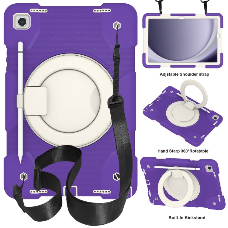 For Samsung Galaxy Tab A11+ / A9+ Silicone Hybrid PC Tablet Case with Shoulders Strap(Purple Blue)