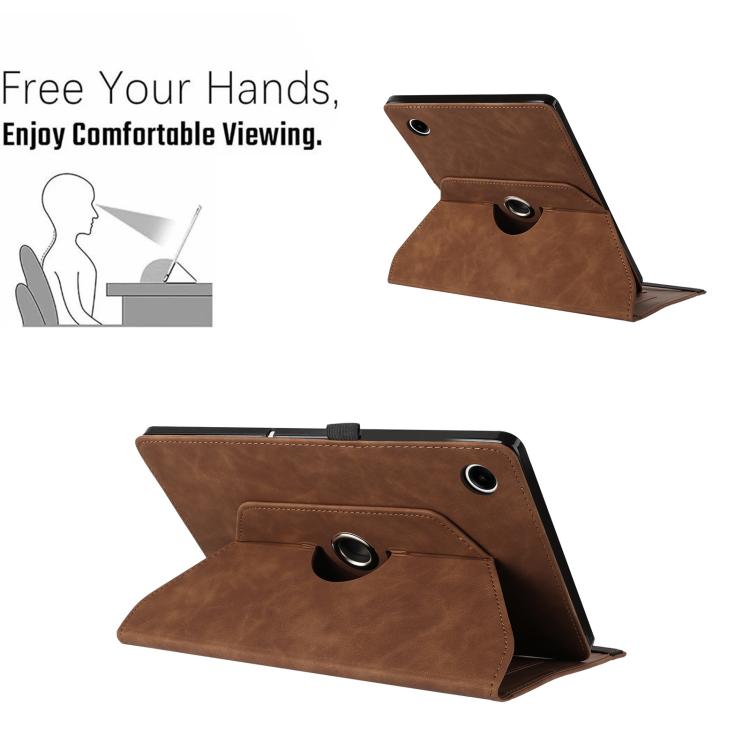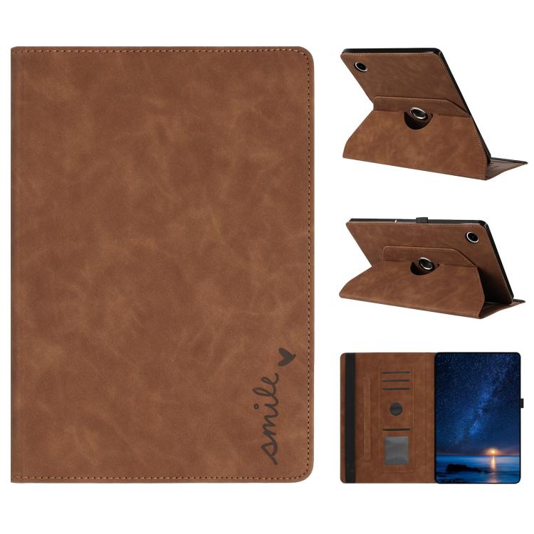 For Samsung Galaxy Tab A11+ / A9+ Smile Embossed Rotation Holder Leather Smart Tablet Case(Brown)