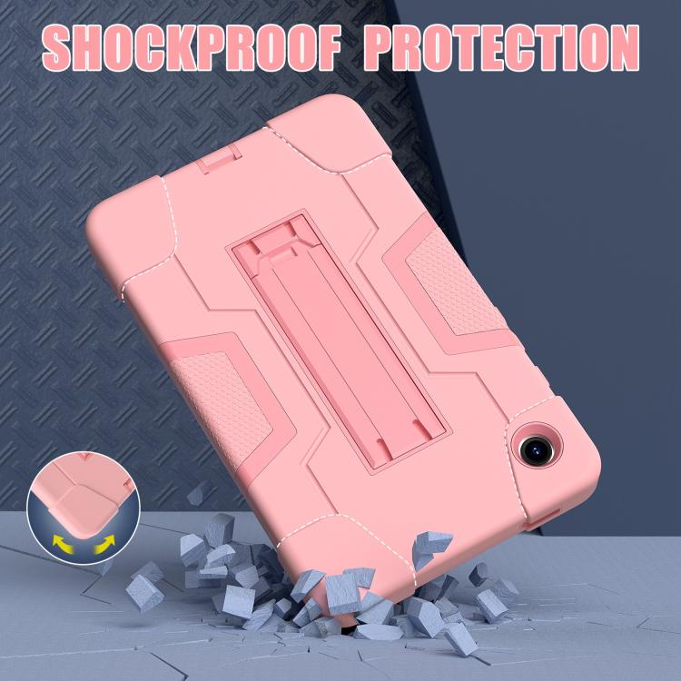 For Samsung Galaxy Tab A11 Contrast Color Silicone PC Tablet Case with Holder(Rose Gold)