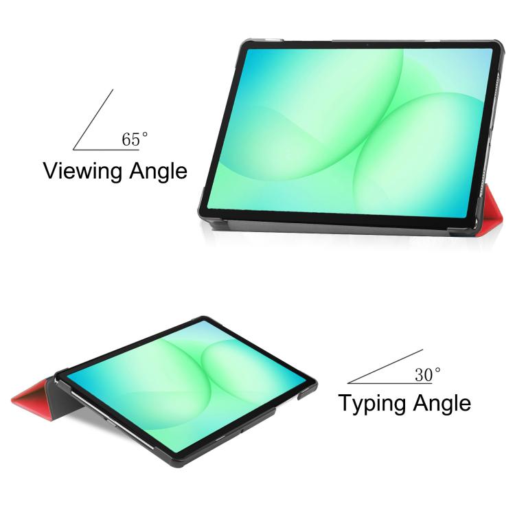 For Samsung Galaxy Tab A11+ Custer Pure Color 3-Fold Holder Smart Leather Tablet Case(Red)