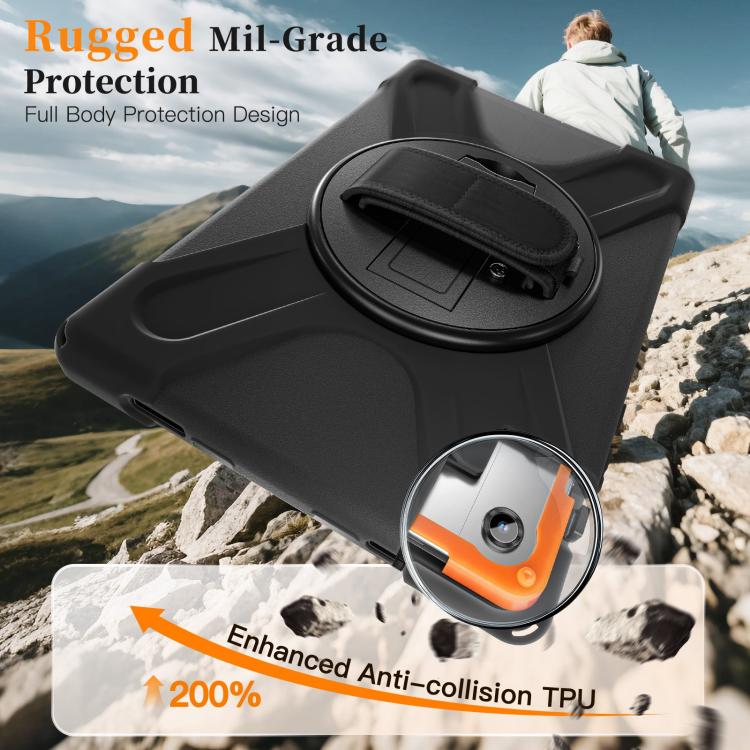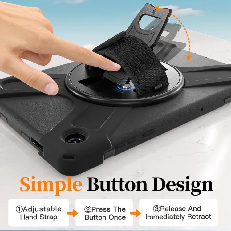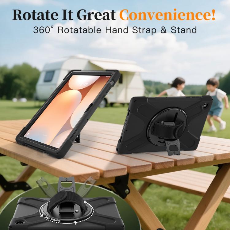 For Samsung Galaxy Tab A11+ Rotatable Holder Silicone Hybrid PC Tablet Case with Shoulder Strap(Black)