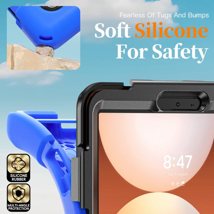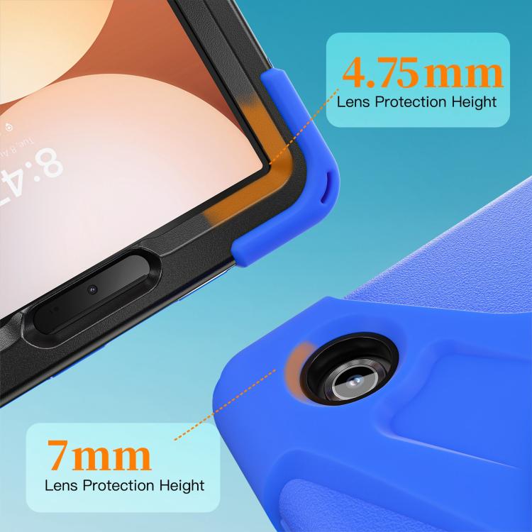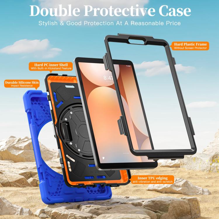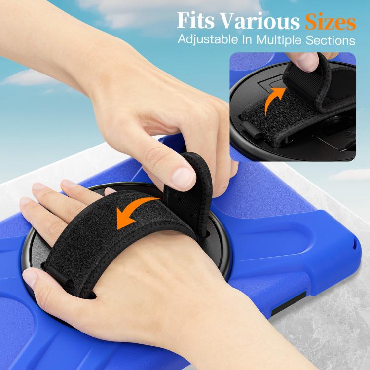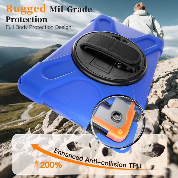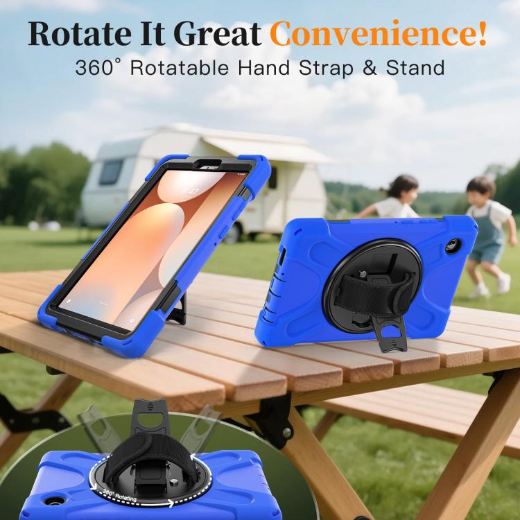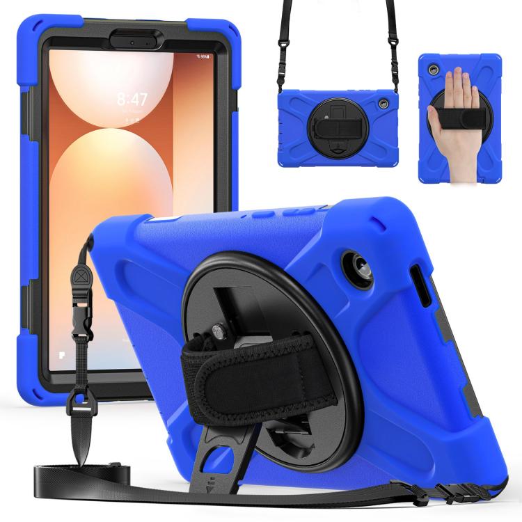 For Samsung Galaxy Tab A11 Rotatable Holder Silicone Hybrid PC Tablet Case with Shoulder Strap(Blue)