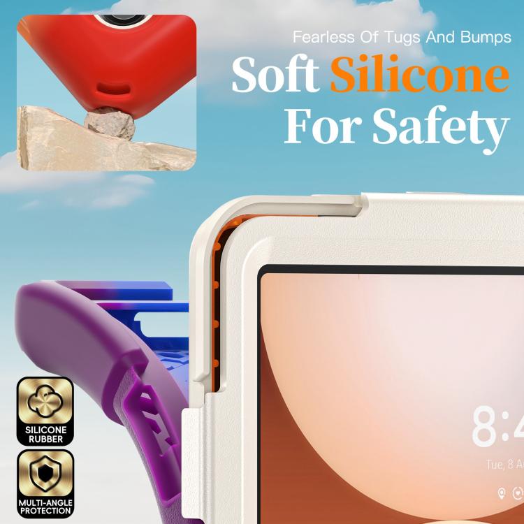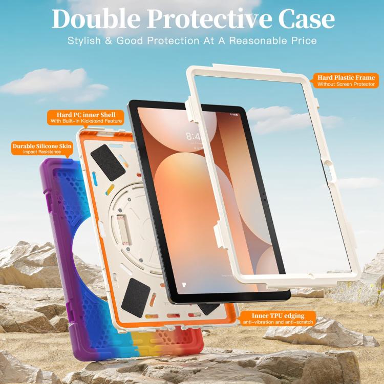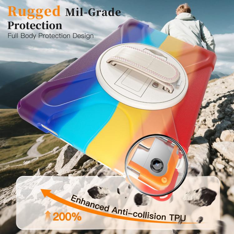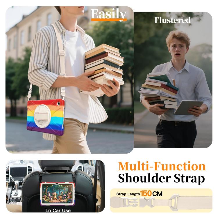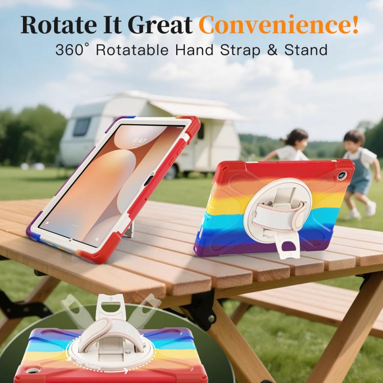 For Samsung Galaxy Tab A11+ Rotatable Holder Silicone Hybrid PC Tablet Case with Shoulder Strap(Colorful Red)