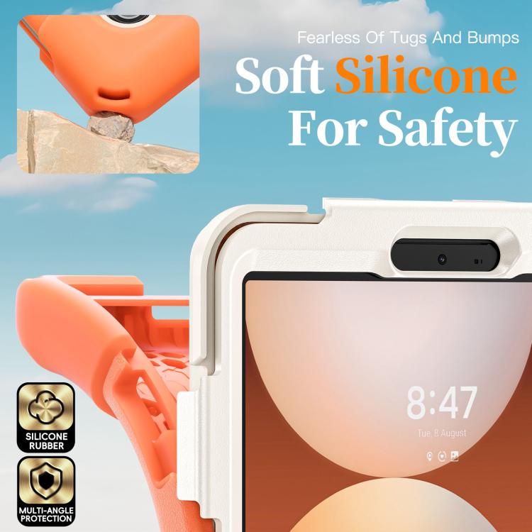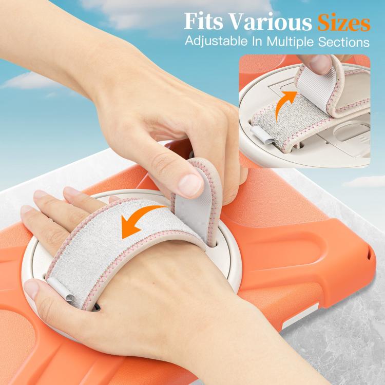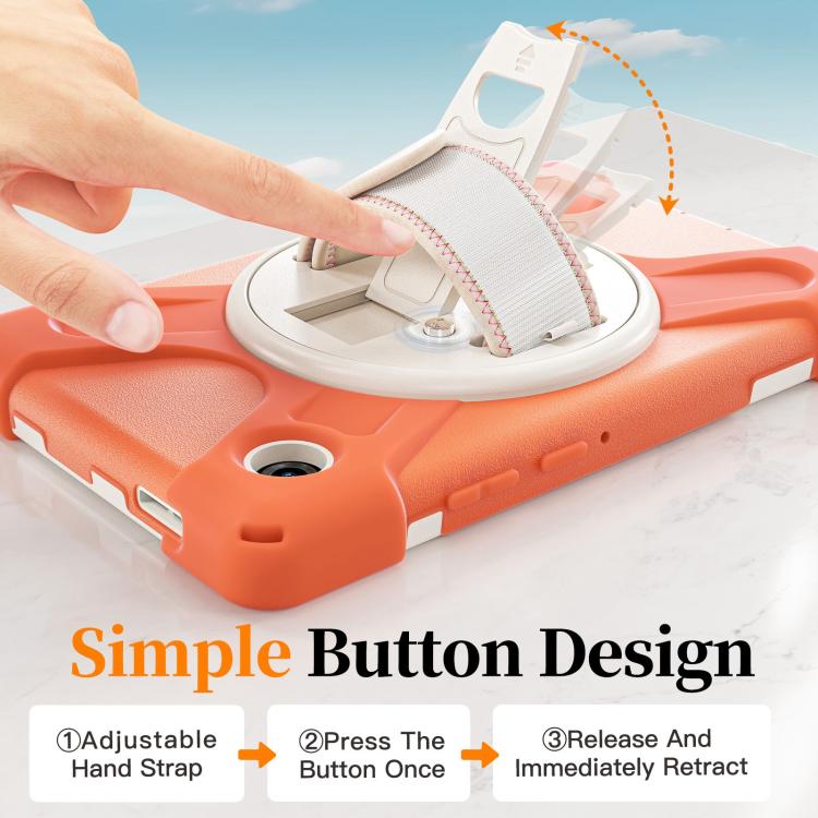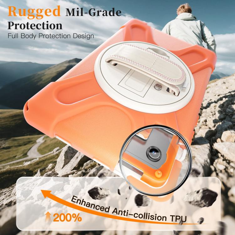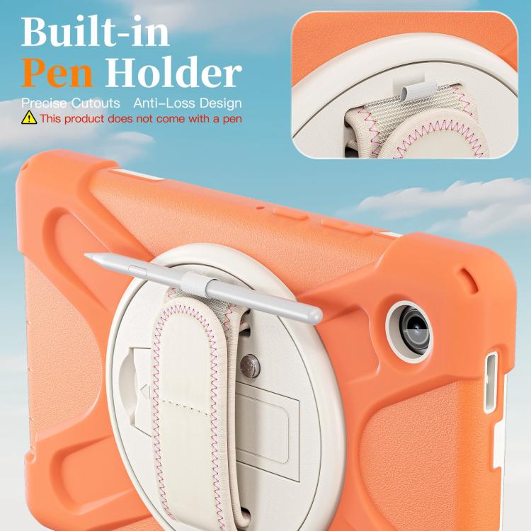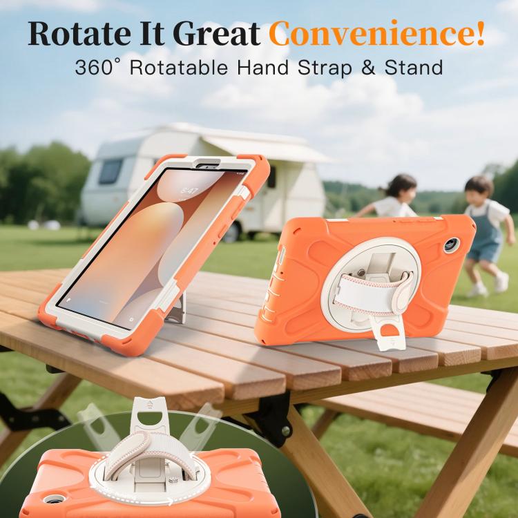For Samsung Galaxy Tab A11 Rotatable Holder Silicone Hybrid PC Tablet Case with Shoulder Strap(Coral Orange)