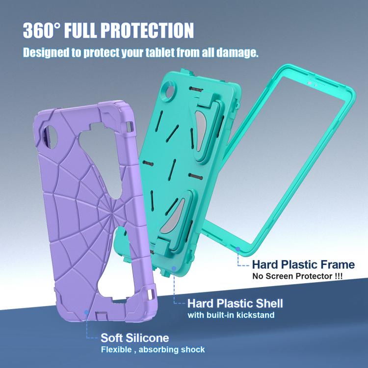 For Samsung Galaxy Tab A11 Spider Silicone Hybrid PC Shockproof Tablet Case(Purple Green)